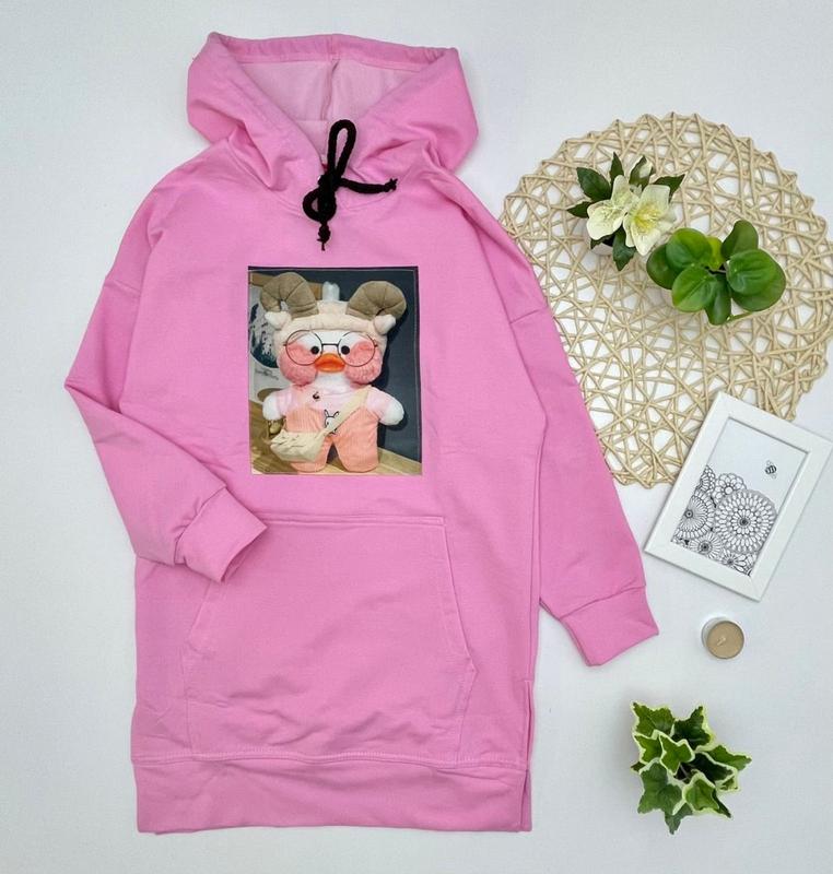 🦤Хит сезона!!! нашумевшая уточка платье-туника с капюшоном и карманом кенгуру ткань качественная двунитка пенье катышам стоп! 🦤уточка-нашивка (может отличаться) СУПЕР КАЧЕСТВО!!!! цена 470 грн размер/🦤дл./пог/рукав от горловины 128/🦤69/43/55-1шт 134/🦤73/45/57-2шт 140/🦤74/46/59-1шт 146/🦤76/47/62-1шт 152/🦤80/50/65-1шт