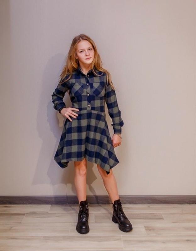 Стильное платье рубашечная ткань с байкой , качество очень хорошее ,рекомендую!!! Спереди застегивается на пуговки , есть кармашки , рукава с манжетом цена 410 длина/ рукав/пог 134-69/50/39 140-73/52/40 146-75/53/42 152-78/56/44 158-82/59/45