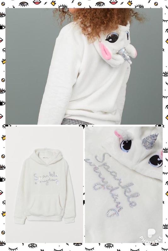 Худи единорог, из мягкого плюша с длинными рукавами и капюшоном с вышивкой и аппликациями. Рельефная окантовка снизу на рукавах и по нижнему краю. Карман-муфта спереди. , новая 14+ Длина 61. ПОГ 51. Рукав 61