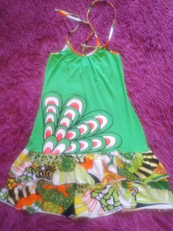 Сарафан на завязках. Замеры: длинна 60, полуобхват груди 33 (сзади на резинке), талии 37, бёдер 44.