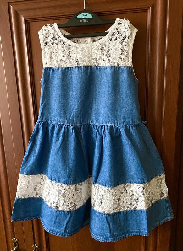 Летнее платье Bembi 98 cm, 2-3 года В идеальном состоянии Тонкий джинс с кружевом