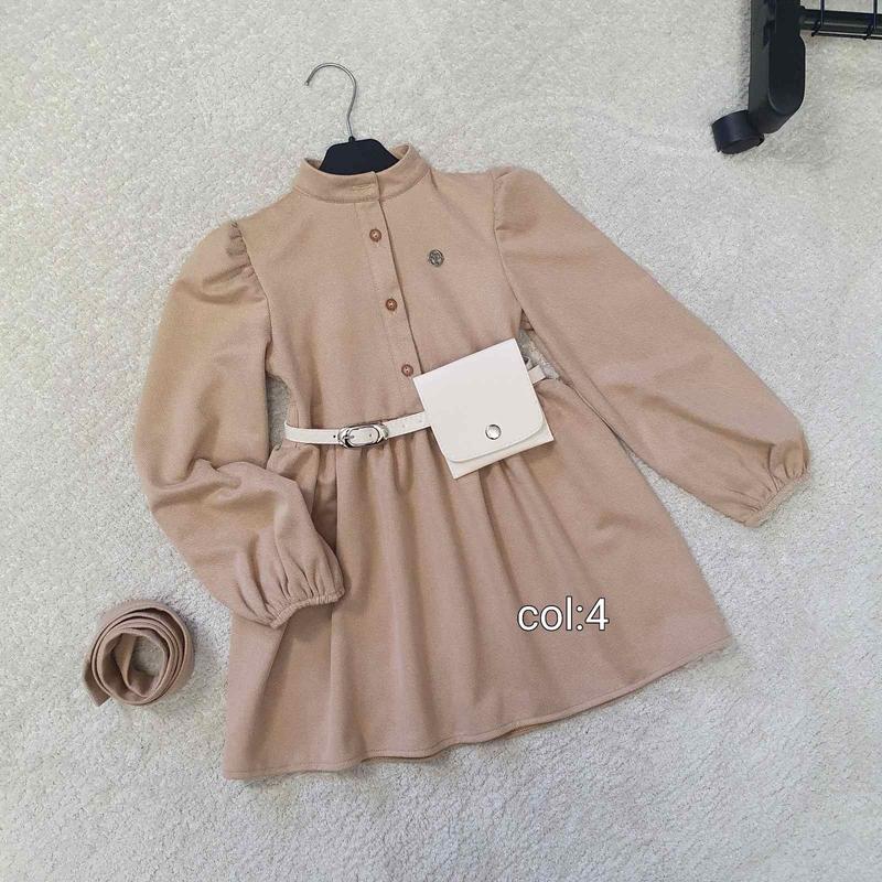 Красивое платье , рукав фонариком ,ткань вельвет , застегивается на пуговки , воротник стоечка , в поясе и на рукавах есть резиночки , поясок входит в комплект длина/рукав/пог 110-58/45/32 116-61/47/33 122-64/50/34 128-68/53/35 артmasya