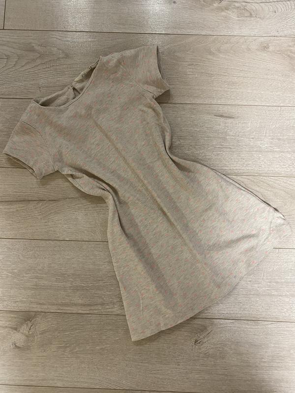 Красивое детское бежевое короткое платье для девочки свободного фасона: Фото на теле нет Рукава короткие Фасон свободный Принт коралловые сердечки Застегивается сзади на пуговицу Тянется средняя плотность Подойдет на 4-7 лет ориентируйтесь по замерам / Длина 63 см) Плечи 29 см) Рукав 9.5 см) Пог 35 см) Пит 35,5 см) Побеги 40,5 см см) Снизу 49 см) Из нюансов-е незначительные пятна на фото указано, тем более цена ниже/ Продается без возврата/