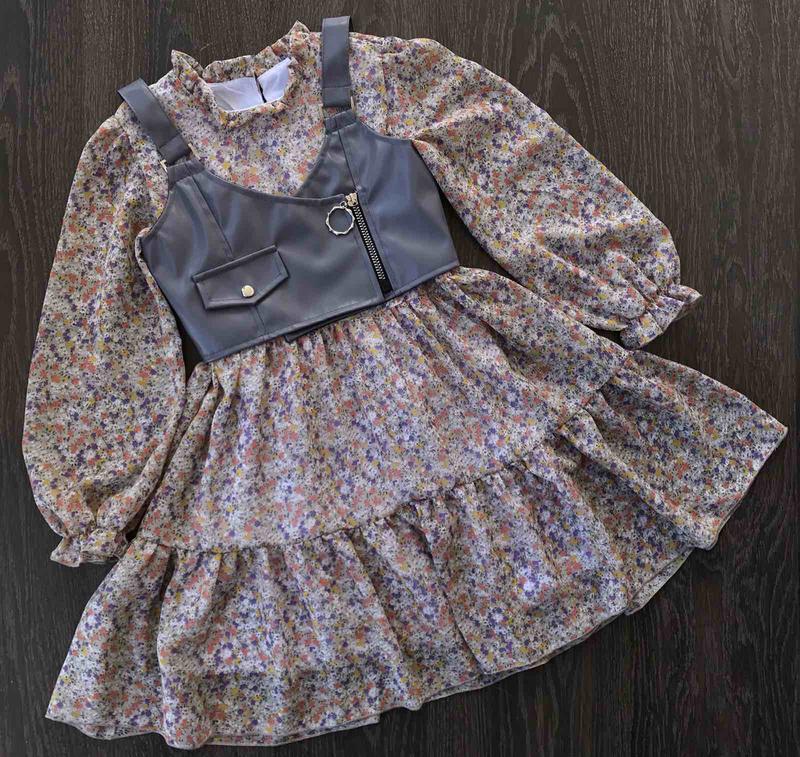 Гарне легке плаття🌹 плаття - шифон топ - еко кожа - в платті є підкладка Розміри в наявності: 134см 2шт 140см 1шт 146см 1шт 152см 1шт Цена: 580 грн Заміри!!!! 134см. Плаття: довжина рукава від плеча - 48см, довжина - 71см, ширина - 37см. Топ: довжина з бретеллю - 30см, ширина - 31см. 140см. Плаття: довжина рукава від плеча - 50см, довжина - 74см, ширина - 39см. Топ: довжина з бретеллю - 31см, ширина - 33см. 146см. Плаття: довжина рукава від плеча- 53см, довжина - 76см, ширина - 40см. Топ: довжина з бретеллю - 32см, ширина- 34см. 152см. Плаття: довжина рукава від плеча- 55см, довжина - 78см, ширина - 43см. Топ: довжина з бретеллю - 34см, ширина - 35см.