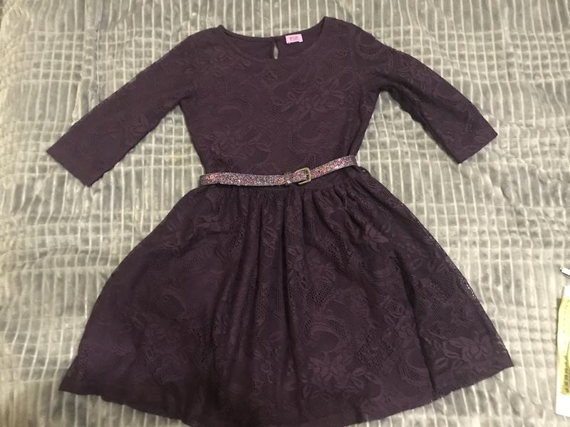 Неймовірне гарне плаття темно-баклажанового кольору. Ажурне з натуральною підкладкою. Пояс в подарунок Фото не передає. Довжина 70 Ширина(пог) 34,5 ПОТ 30,5 Рукав 3/4 32,5