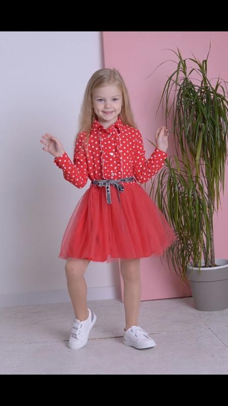 Тканина софт + фатін. На гудзички. Поясок в комплекті. Виробник Україна!!! ☑️98р: довжина 49см, пог 29см, рукав 39см — 1шт. ☑️104р: 51/29/40см — 1шт. ☑️110р: 53/31/42,5см — 1шт. червоне ☑️116р: 57/31/42см — 1шт. ☑️122р: 61/34/45см — 1шт. лілове 🍦