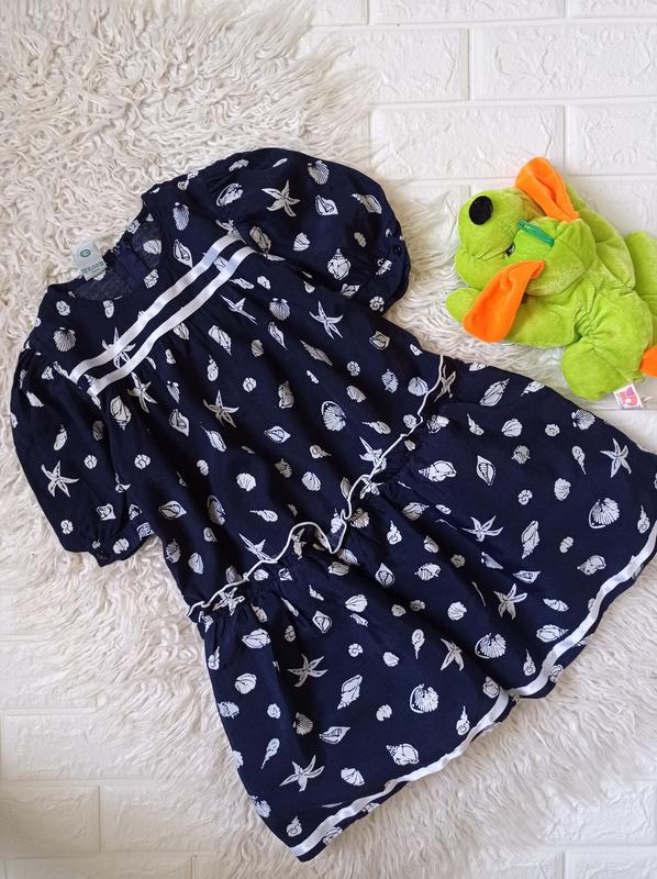 Очень красивое платье для девочки,темно синее с морскии принтом/ сзади на молнии/подкладка на фатине до первогоя яруса сборки. Размер указан 116 Замеры на фото Новое,но есть ньюанс в виде затяжки,в носке совсем не заметно/на последнем фото/