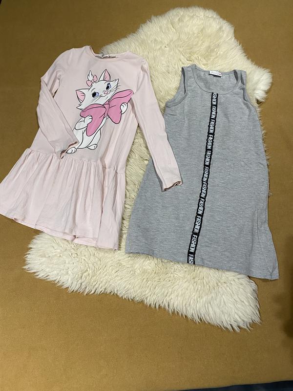 Два платья для девочки,серая сарафан, розовая с кошечкой) Замеры серого платья Длина 61,4 см) Плечи 22,5 см) Пог 33 см) Пит 34 см) Полуобхват по низу 46 см) Замеры мерцающего платья Длина 60 см) Плечи 26 см) Пог 33 см) Пит 33 см) Полуобхват по низу 62 см ) Рукав 43,3 см) С нюансов-на розовом платье есть следы ношения,пятна, тем более цена ниже/ Продается без возврата/