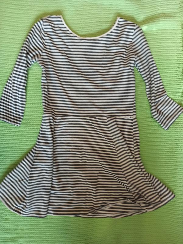 Платье в полоску, темная полоса с люрексом , на 10-12 лет, рост146-152 см, длина 72 см, ПОГ 36 см, ПОТ 34 см, внизу ширина 90 см, длина рукава 36 см.