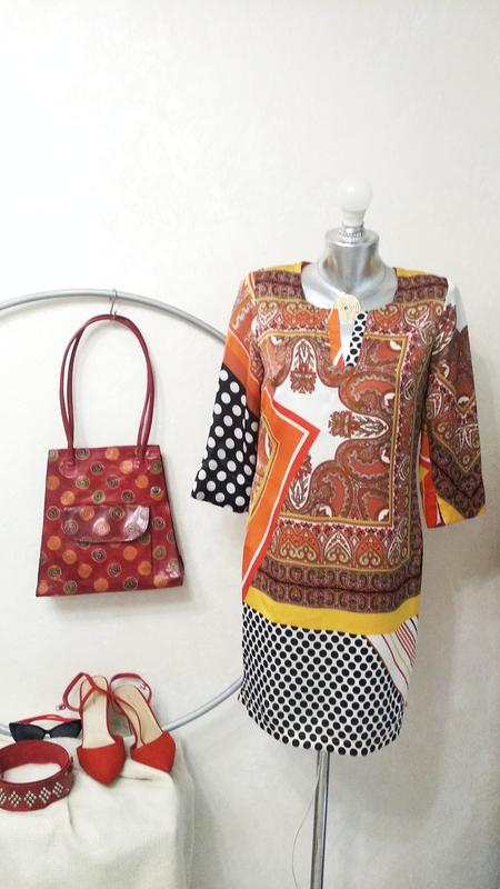 Красивое шелковое платье с необычным принтом "платки", от немецкого бренда Best connection. Размер указан евро 34( наш 42). Подойдёт на девочку подростка. На подкладке. Состав полиестр. Длина 87. ПОГ 46, Длина рукава 45, Плечи 36. Состояние нового .