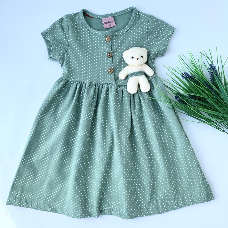 Стильное, летнее платье для девочки на лето В мятном цвете в горошек с игрушкой Игрушку можно вынимать. Гудзики деревянная яни с камушками, расстегиваются Легкая, приятная и из натуральной ткани ▫️2р (длина 52см,ширина 25см)