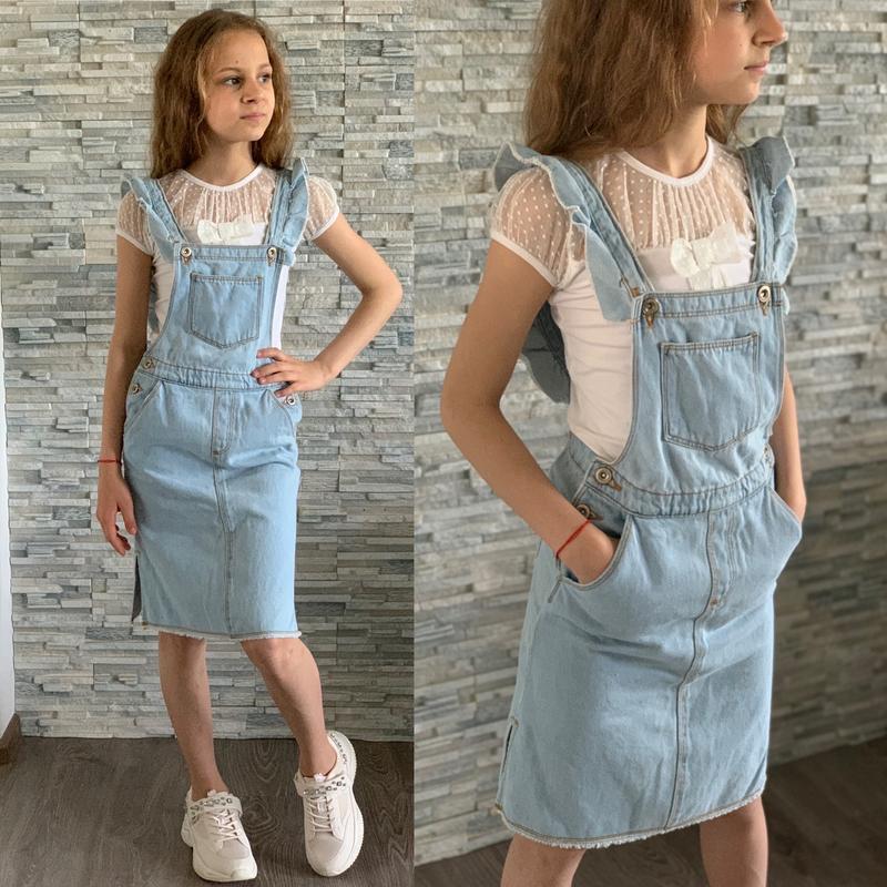 Детское джинсовое сарафан zara/голубое платье/юбка для девочки/детский джинсовый сарафан з...