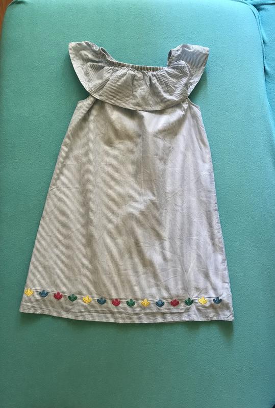 Нарядный сарафанчик в тонкую полосочку с яркой вышивкой по низу, на тонкой подкладке Пог 39, длинна 67