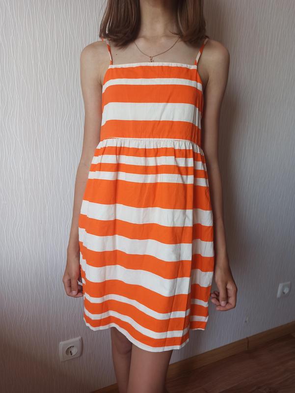 Стильный легкий сарафан на девочку. На последнем фото указан нюанс-небольшая зацепка. Замеры: длина 75 см, пот 37 см.