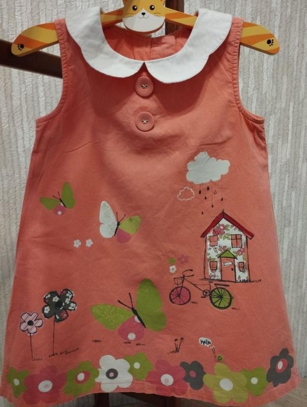Платье невероятной красоты. 100% котон. Возраст примерно 3-5 года, в зависимости от телосложения ребенка. Рисунок нанесен краской. При стирке краска не вымывается. Замеры: длина по спинке 50 см, ширина (подмышки) 30 см, длина от проймы 39 см последнее фото - все 3 единицы вещей - 200 грн. 2 футболки от Джимбори в идеальном состоянии.