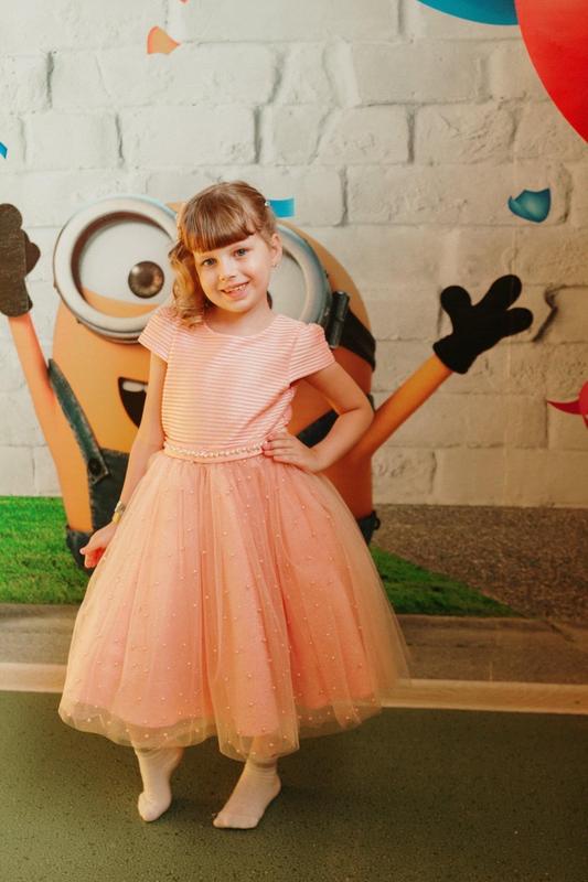 Красивое пышное платье на подкладке. По бирке на 6 лет. На стройную девочку можно дольше. Смотрите замеры: пояс 29 см, длина общая 74 см, до пояса 23.