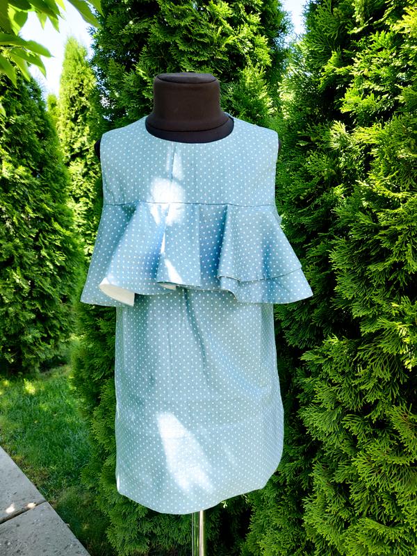 ➖➖➖➖➖➖➖➖➖➖➖➖➖ Платье голубое в горошек Цвет: голубой Материал: хлопок Состав: 100% хлопок ➖➖➖➖➖➖➖➖➖➖➖➖➖ Размер 134 Длина по спинке: 62 см Длина спереди: 58 см Ширина плеч: 27 см Полуобхват груди: 35 см