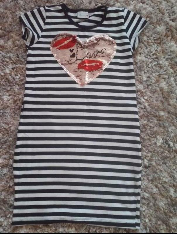 Стильне платтячко в паєтки-перевертиші ф. BARMY на р.140, 95%котон,5% еластан, стан ідеальний(як нове).Якісний трикотаж, збоку карманчики, паєтки міняють 2 відтінки Довжина 74см,під ручками 39см, плече 6,5см, рукавчик 9см
