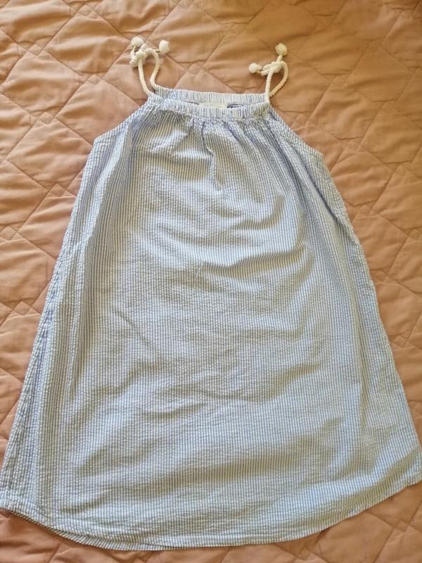 Сарафан в дрібненьку смужку на бретельках-шнурочках. Довжина 62 див.