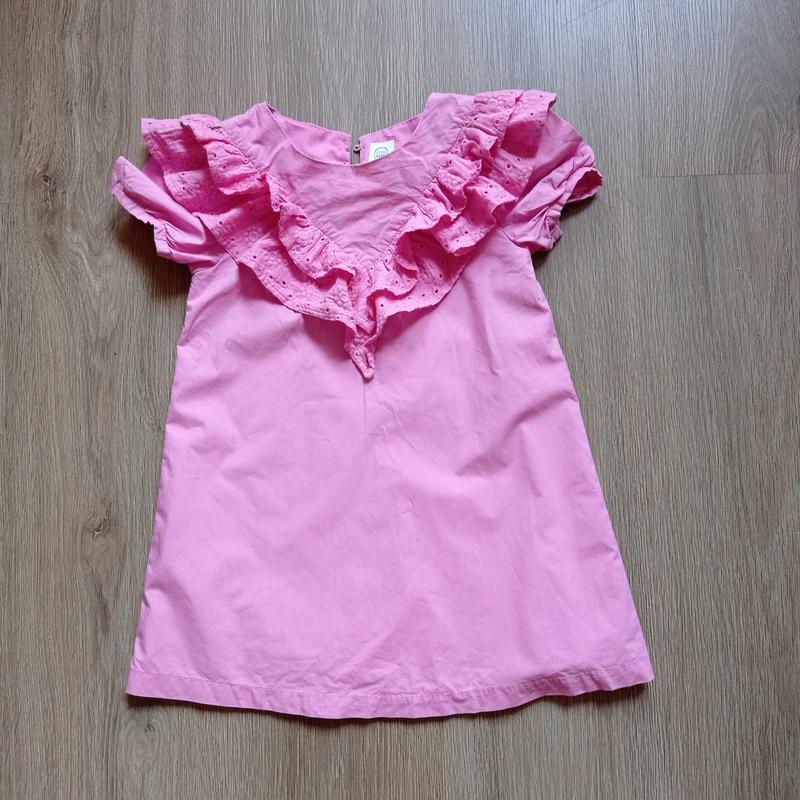 Хорошенькое розовое платье, по наборке 110 рост, но очень маломерит!Десь на 3-4 рюмки.На фото указала замеры.Стан замечательный, одети 3 раза