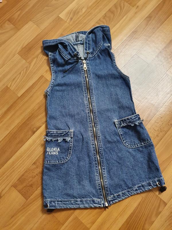 Джинсовые платья с капюшоном, в отличном состоянии. Размер 104. Длина 54 см, ширина под руками 30 см.