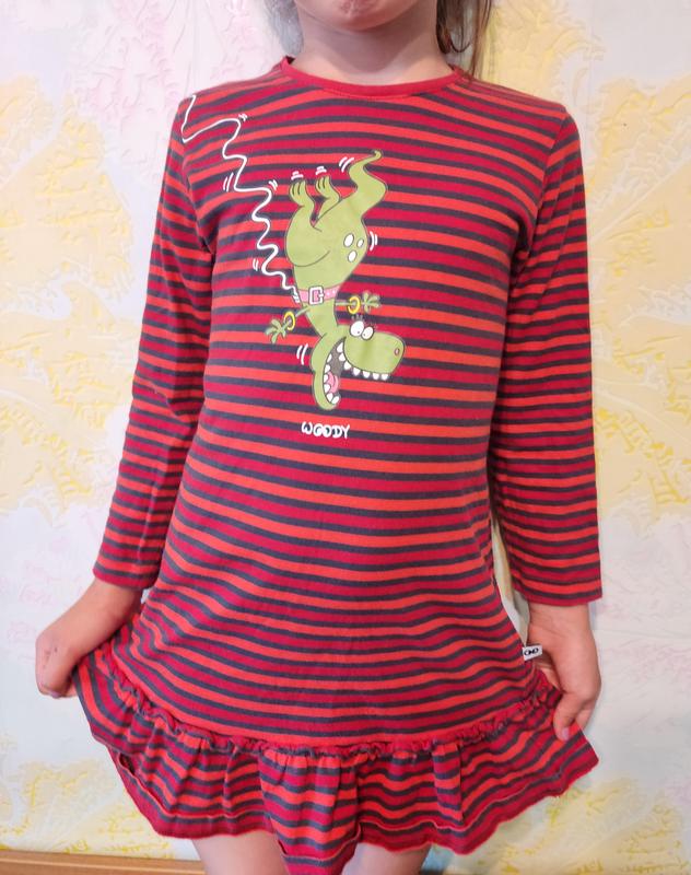 Интересное платьице с прикольным рисунком на девочку в идеальном состоянии! По бирке рост 116 см, но лучше ориентироваться на замеры: Длина платья 62см Длина рукава 37 см ПО груди 34 см. Состав: 100% хлопок. Смотрите мои лоты (все вещи яркие, интересные, в отличном или очень хорошем состоянии по приемлемым ценам) и экономьте на доставке ;-)