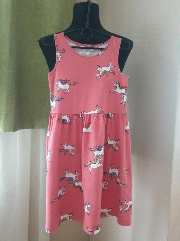Трикотажное платье H&M для девочки без рукавов с принтом. Отрезная талия и расклешенная юбка. Размер на 8-10 лет, на рост 134/140.