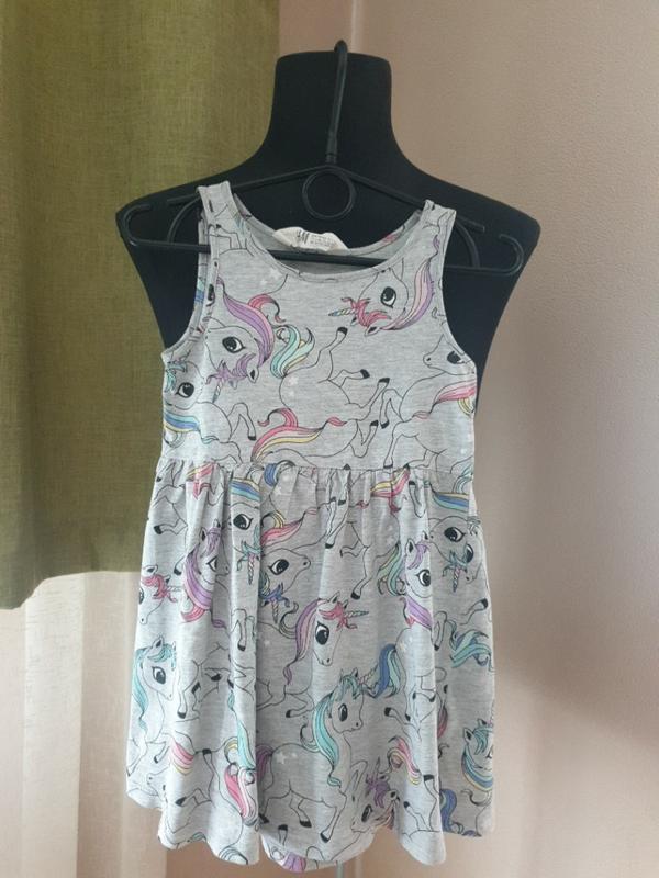Трикотажное платье H&M для девочки без рукавов с принтом. Отрезная талия и расклешенная юбка. Размер на 2-4 года, на рост 98/104.
