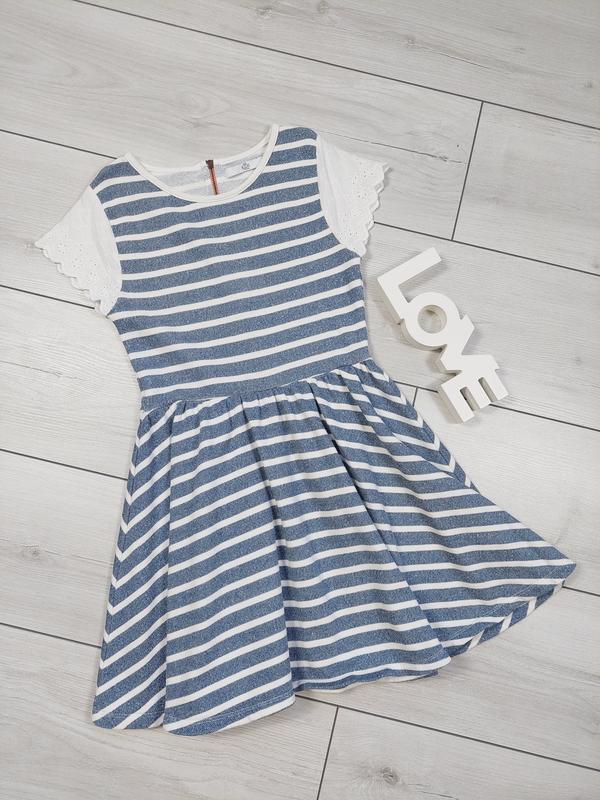 Трикотажное платье в полоску F&F для девочки 7-8лет р.128см по бирке ,как новая вещь. Дл.65см до юбки 30см ПОГ 31,5см ПОТ 27,5см Трикотаж петелька,качество классное.