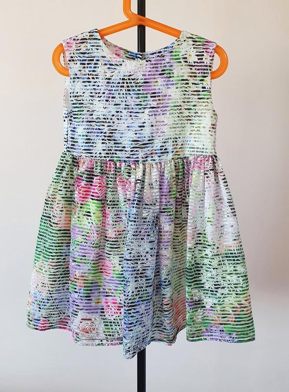 Дуже приємне м'яке в той же час нарядне плаття для дівчинки. В ідеальному стані, купляли новим і одягали кілька раз. Для віку 4-6 років. Довжина по спині - 63 см Полуобхват в поясі - 30 см