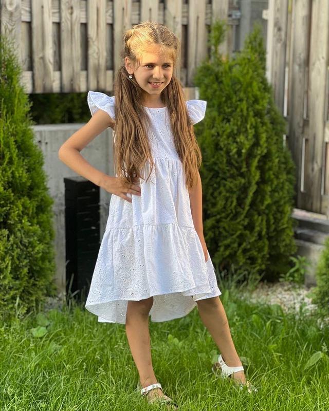 Сукня з прошви святкова для дівчаток сарафан білий з крильцями на плечах