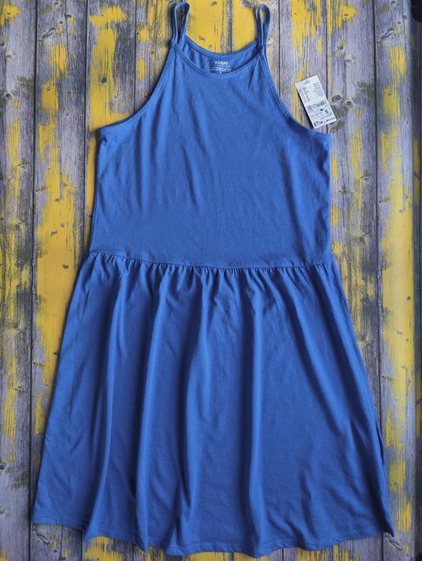 Літній сарафан для дівчинки підлітка від торгової марки Kiabi (Франція), підійде дівчинці зростом 164 см, приблизний вік 14-15 років. Сарафан для дівчинки однотонний синього кольору, тканина легка та еластична. Сарафан для дівчинки на тонких бретельках. Сезон: весна/літо. Склад: 69% бавовна, 31% полієстр