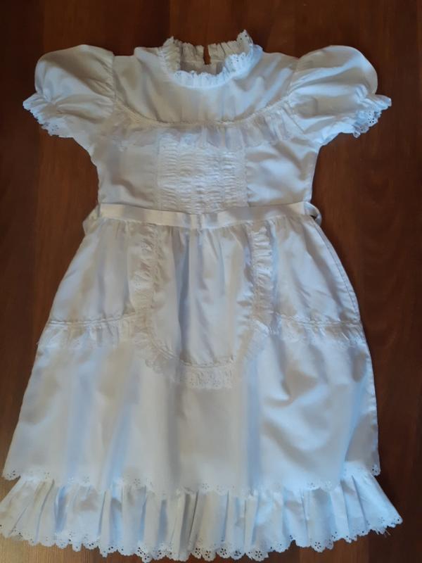 плаття білого кольору, на спині на замочку, на рукавах резиночки легкі, на поясі ззаду зв'язується на бант, одягалося кілька разів, легеньке, тканина не парить, виробництво Тайланд. Пересилка новою або укрпочтою дешево.