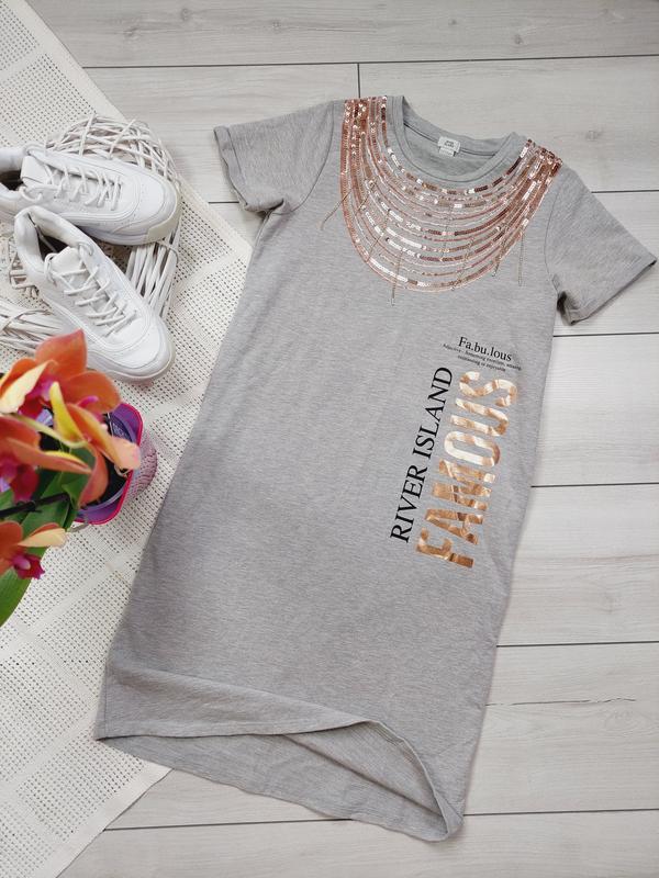 Стильное платье River Island для девочки 11-12лет р.152см по бирке, состояние идеальное. Дл.89см пог 41см поб 44см Прямого кроя,по груди расшито пайетками и стразами. Трикотаж средней плотности,со стрейчем 86%коттон 8%полиэстер 6%эластан