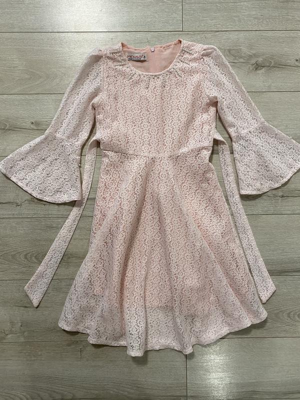 Фото на тілі нема Воротник круглий на ньому жемчужинки декор Рукави трьохчертвертні кльош на них теж бусинки декор Фасон по фігурі юбка трапеція Застібається ззаді на спинці на замок Підійде на 6-8 років оріентуйтесь по замірам У составі коттон поліестер Довжина 79 см) Плечі 25 см) Рукав 40 см) Пог 32,5 см) Пот 29 см) Поб 57-58 см) Знизу 83 см)