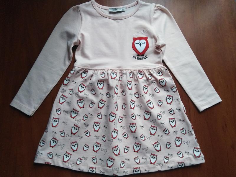 Сукня для дівчинки ніжного персикового кольору, по бірці на зріст 86см, але можна носити і на більший. Краще орієнтуватися на заміри. Довжина 45,5 см, ширина по грудях 26,5 см, довжина рукава 32,5. Стан нової