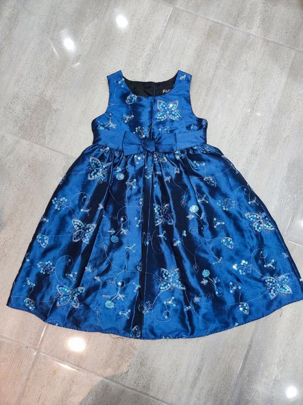 Сукня начиненого темно-бірюзового кольору, з вишивкою з пойєтками, фірма "F&F". Має підюбник чорного кольору із фатину.
