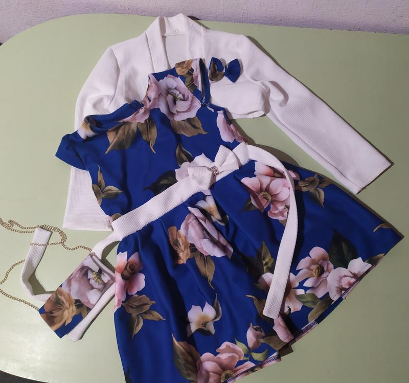 Хорошенькое платье на девочку 4-5 лет, с сумочкой и болеро. Есть нюансы в виде зацепок (последние фото) Спереди и сзади практически не заметны, и на сумочке с тыльной стороны