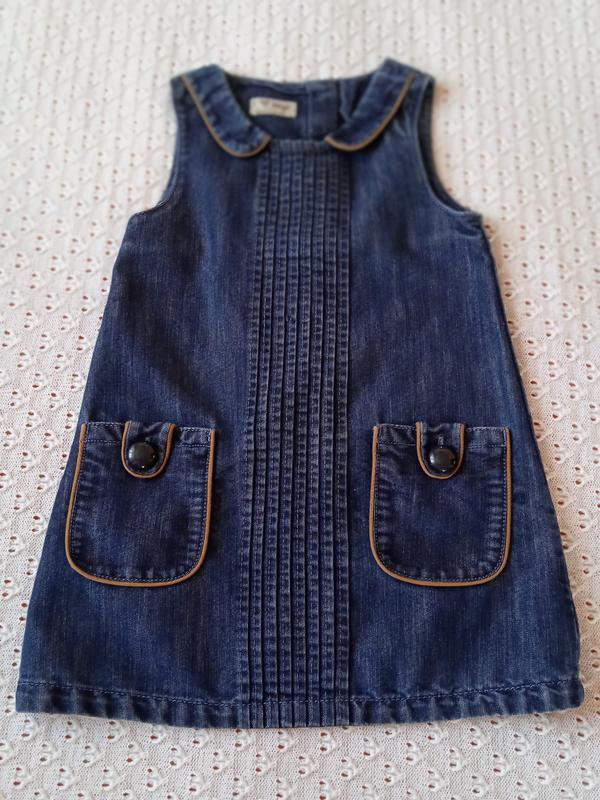 Джинсовий сарафан відомого бренду Next в ідеальному стані. Розмір вказаний 2-3 роки, на приблизний ріст 98 см. Джинс середньої плотності, синього кольору. Спереду дві накладні кишені. Защіпається ззаду на гудзики. Гарно виглядає на дитині. Якість дуже хороша! 👍 Довжина 52, ширина під ручками 30 см. Дивіться також інші мої оголошення, є хороші речі для дітей та дорослих.
