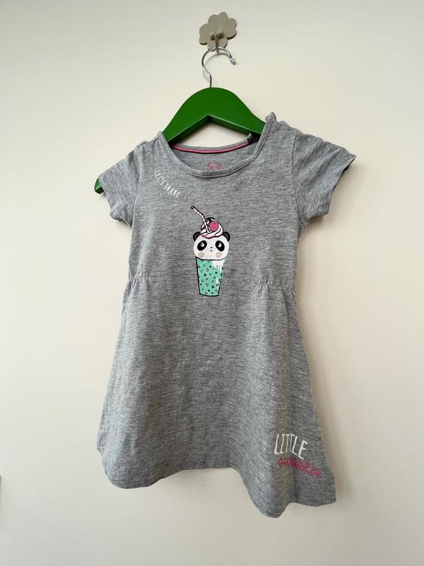 Опис: •сукня з коротким рукавом •кругла горловина •з боків-резинки •сірий колір,принтована:панда-морозиво Склад: •90% бавовна •10%віскоза Розмір повномірний 86/92 (12-24 mesi) Країна виробник: Німеччина
