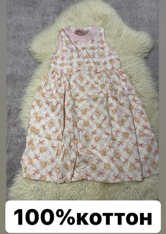 Якісна та зручна не парка сукня для дівчинки/ За рахунок мішкувато фасону підійде на 2-5 років орієнтуйтесь по замірах/ Довжина 68 см/ Плечі 20 см/ Пог 30 см/ Пот 32 см/ Знизу 52 см/ З нюансів-є плями ,за рахунок принту їх непомітно,на фото вказано,у ціні враховано/ Продається без повернення/