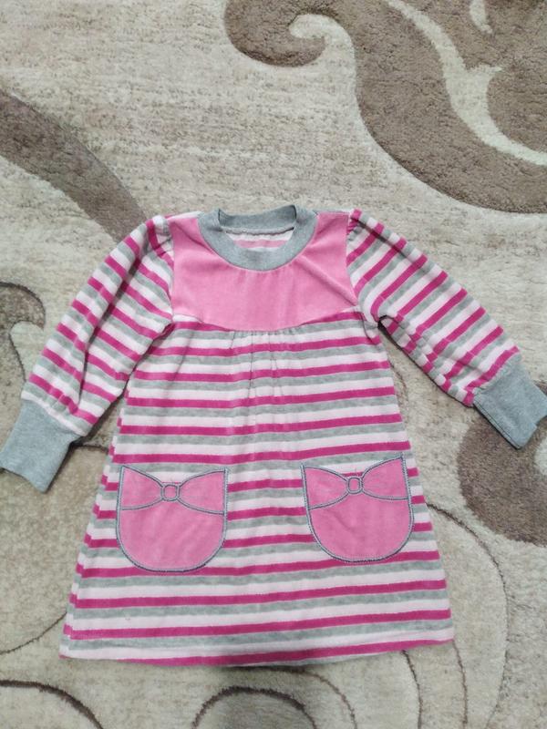 Чудова сукня для дівчинки, оздоблена 2 кишенями, довжина виробу 50см, довжина рукава 32см.