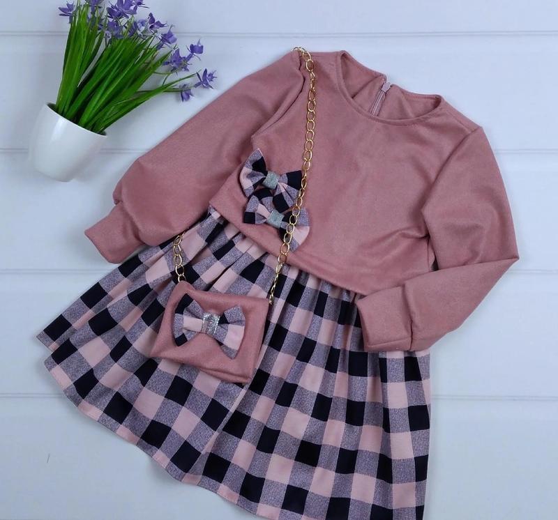 Стильна сукня для юних красунь 💓💓💓 з сумочкою 👛😍 Приємна тканина, позаду застібається на блискавку, талія регулюється пояском 🤩🤩🤩 Тканина: верх- французький трикотаж/ низ- костюмка ✔ Виробник: Україна 💙💛 р.104-1шт р.110-1шт р.116-1шт р.122-1шт р.128-1шт ЗАМІРИ ⤵️ +/- 1-2см!!! ◾р.104- довжина 51см/ рукав від плечевого шва 35см/ ширина талії 30см ◾р.110- довжина 54см/ рукав від плечевого шва 37см/ ширина талії 31см ◾р.116- довжина 57см/ рукав від плечевого шва 39см/ ширина талії 31см ◾р.122- довжина 59см/ рукав від плечевого шва 40см/ ширина талії 31см ◾р.128- довжина 64см/ рукав від плечового шва 43см/ ширина талії 31см