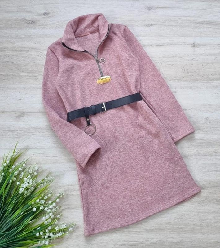 Тепленьке платтячко тканина ангора вязка поясок в комплекті аплікація пришита комір стійка застібається на блискавку є кишені 134(2 шт)-довжина 70,рукав 49,пог 35 152(1 шт)-довжина 80,рукав 57,пог 39 Ціна 500 грн