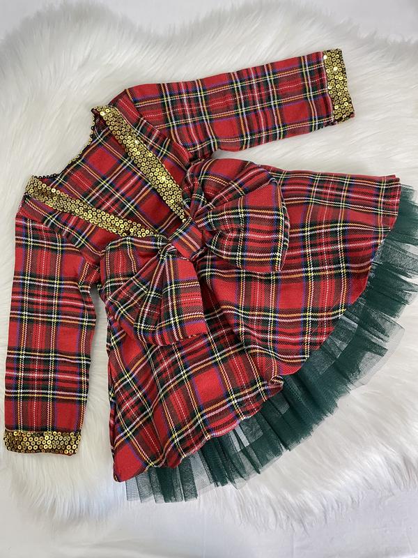 Гарна сукня у клітинку з єлементами золота та пишним під‘юпником. Ідеально підійде для новорічної фотосесії. Дуже красива відкрита спинка. В наявності розміри 80,90,120 см - маломірить