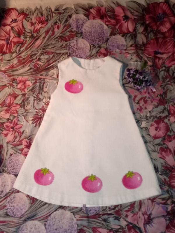 длина 43, пог 24,низ 40,ззади на пувицах, стильная, Валенсия,на 2-4роки,стан нового, ткань типа как фафельные полотенцы бывают.