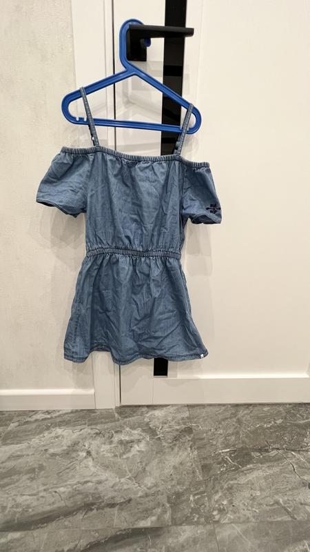 Дуже класна сукня, під Джинс, круто виглядає, на зріст 134 — 140 сантиметрів, бретельки регулюються