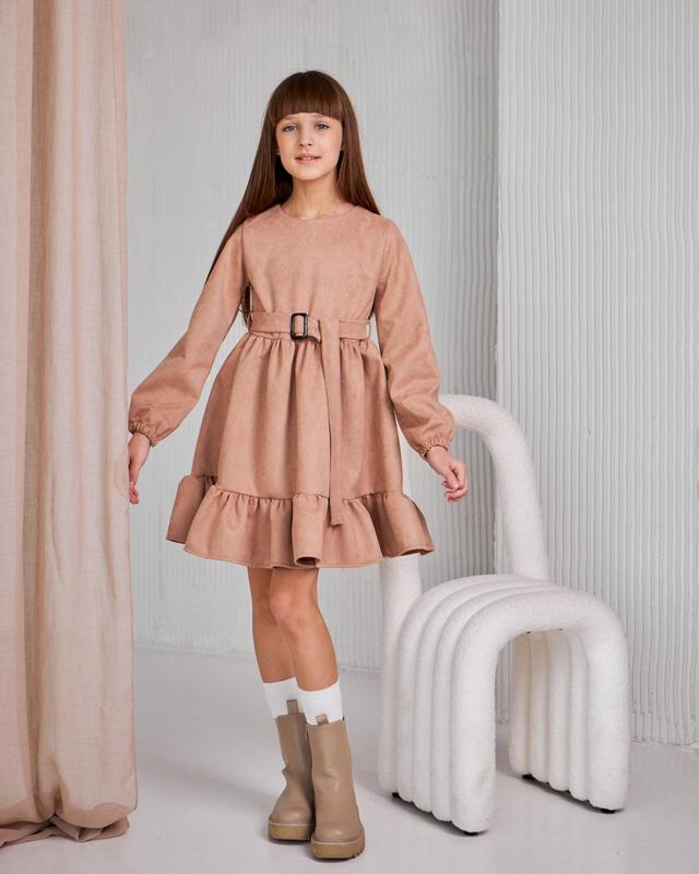 Неймовірно стильне плаття для справжніх модниць 🤩🤩 Талія ругулюється пояском який иде в комплекті, позаду застібаєтся на блискавку, має приємну тканину 😘😘 Тканина : замш Виробник Україна 🇺🇦 ЗАМІРИ +/-1-2см!!! ▪️р.134 довжина 68см/рукав від плечевого шва 47см /ПОГ 33см ▪️р.140 довжина 72см/рукав від плечевого шва 49см /ПОГ 35см ▪️р.146 довжина 75см/рукав від плечевого шва 51см /ПОГ 36см ▪️р.152 довжина 79см/рукав від плечевого шва 53см /ПОГ 37см ▪️р.158 довжина 82см/рукав від плечевого шва 54см /ПОГ 38см ♡