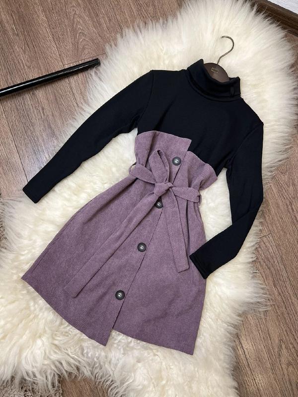 мас Нереально стильне та тепле платтячко тканина термо трикотаж -дуже теплий та приємний до тіла та мікро вельвет. Прикрашено декоративними гудзиками , є поясочок заміри довжина\рукав\пог 134/67/43/36 140/71/45/37 146/72/48/38 152/76/51/40