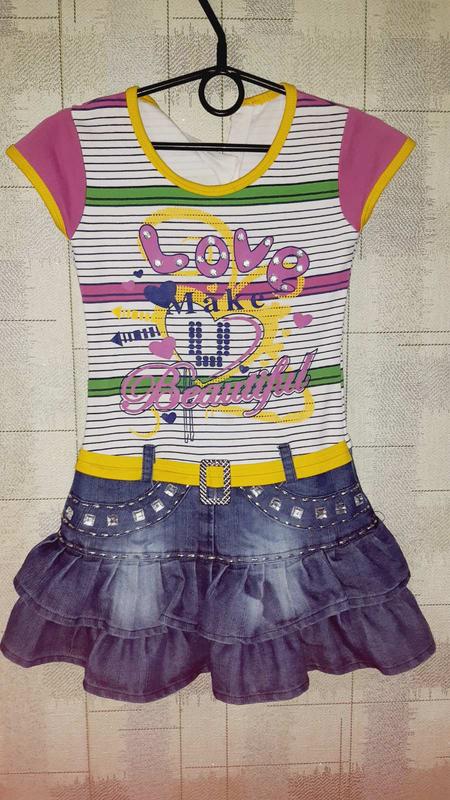 Красивое платьеце, верх- трикотаж, низ- джинс. Длина-60см,ПОТ-27см. ПОГ-28см .